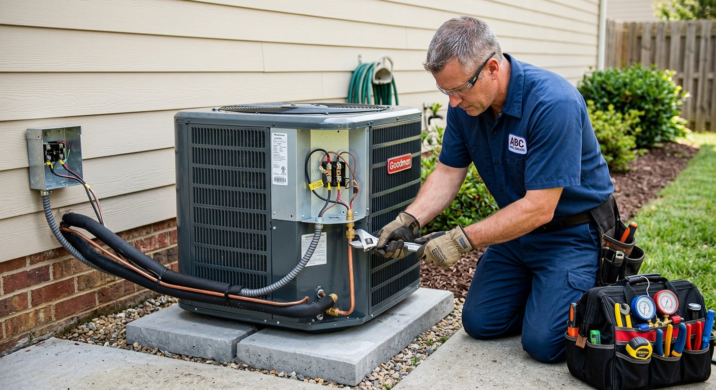 Complete central air conditioning installation for Springfield homes. Our licensed HVAC contractors size and install the right system for your home — outdoor condenser, air handler, refrigerant lines, thermostat and ductwork connections. Most jobs completed in 1 day.